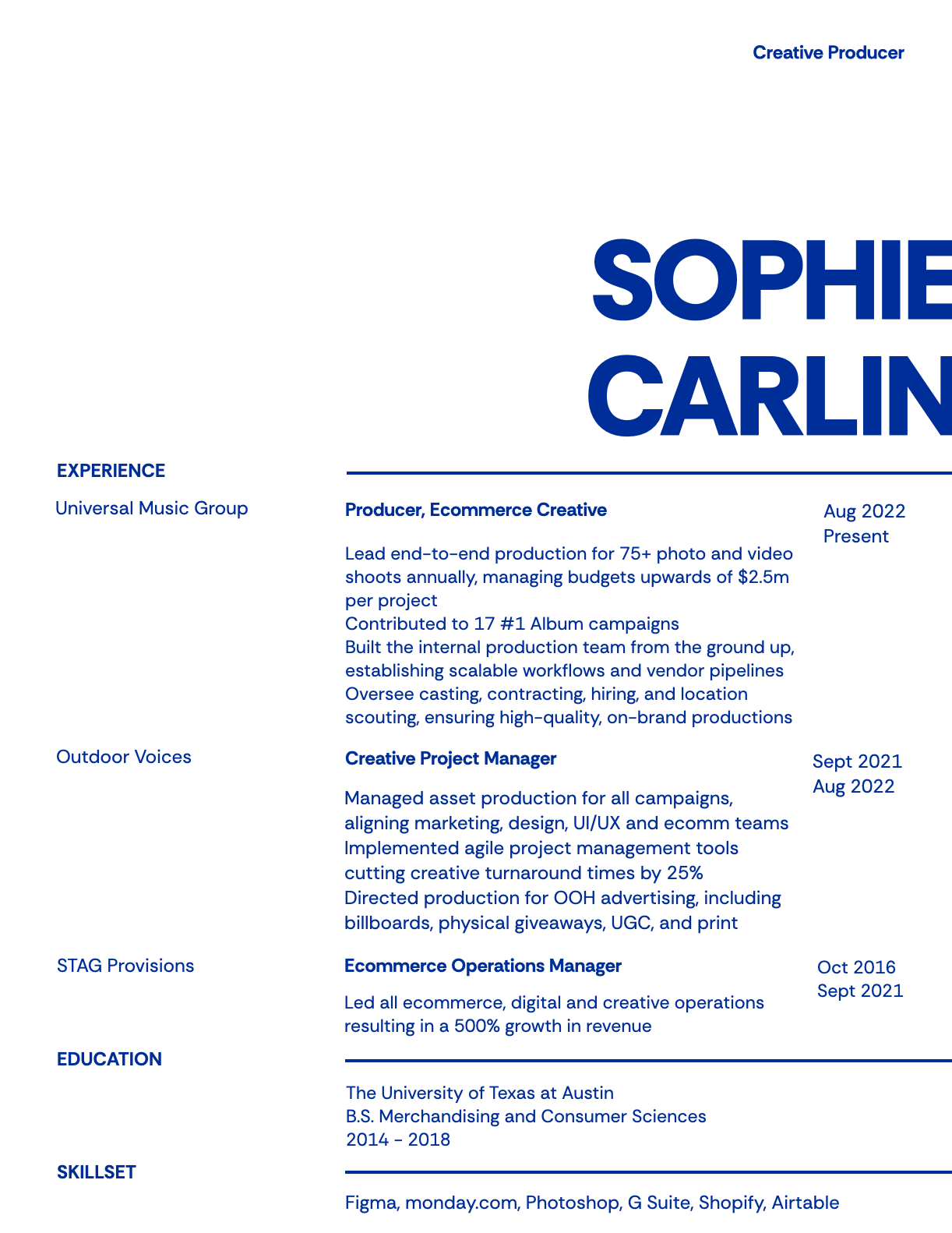 Sophie Carlin is a Creative Producer and Project Manager based on the East Coast.